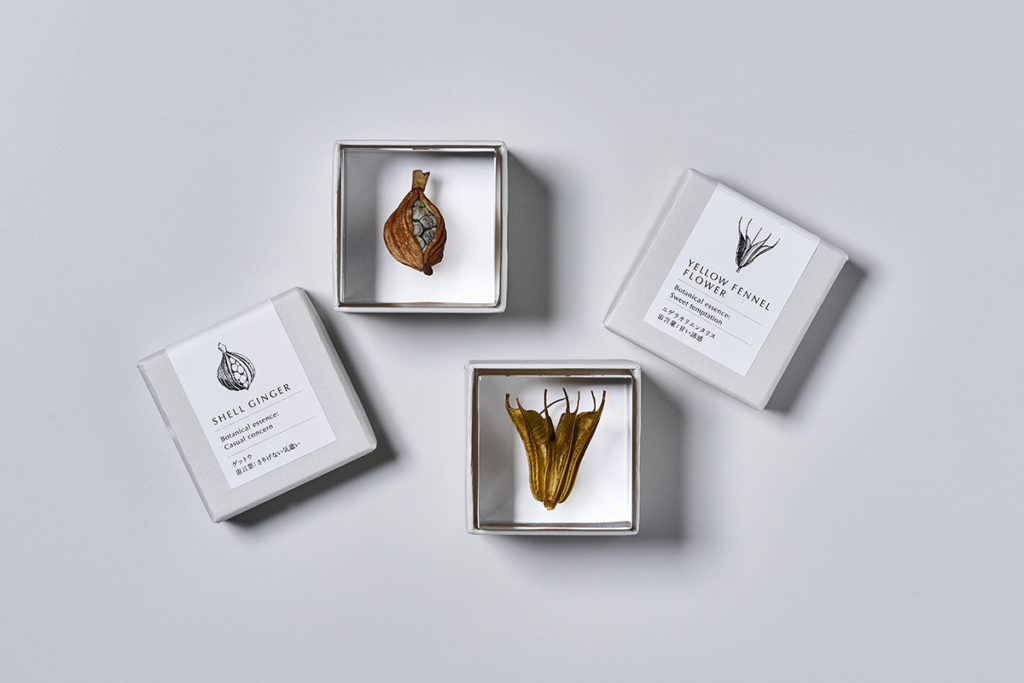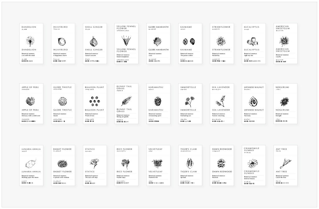 シンプルなグレーの貼り箱に、標本ラベルをモチーフにした植物のイラストを描かせて頂きました。